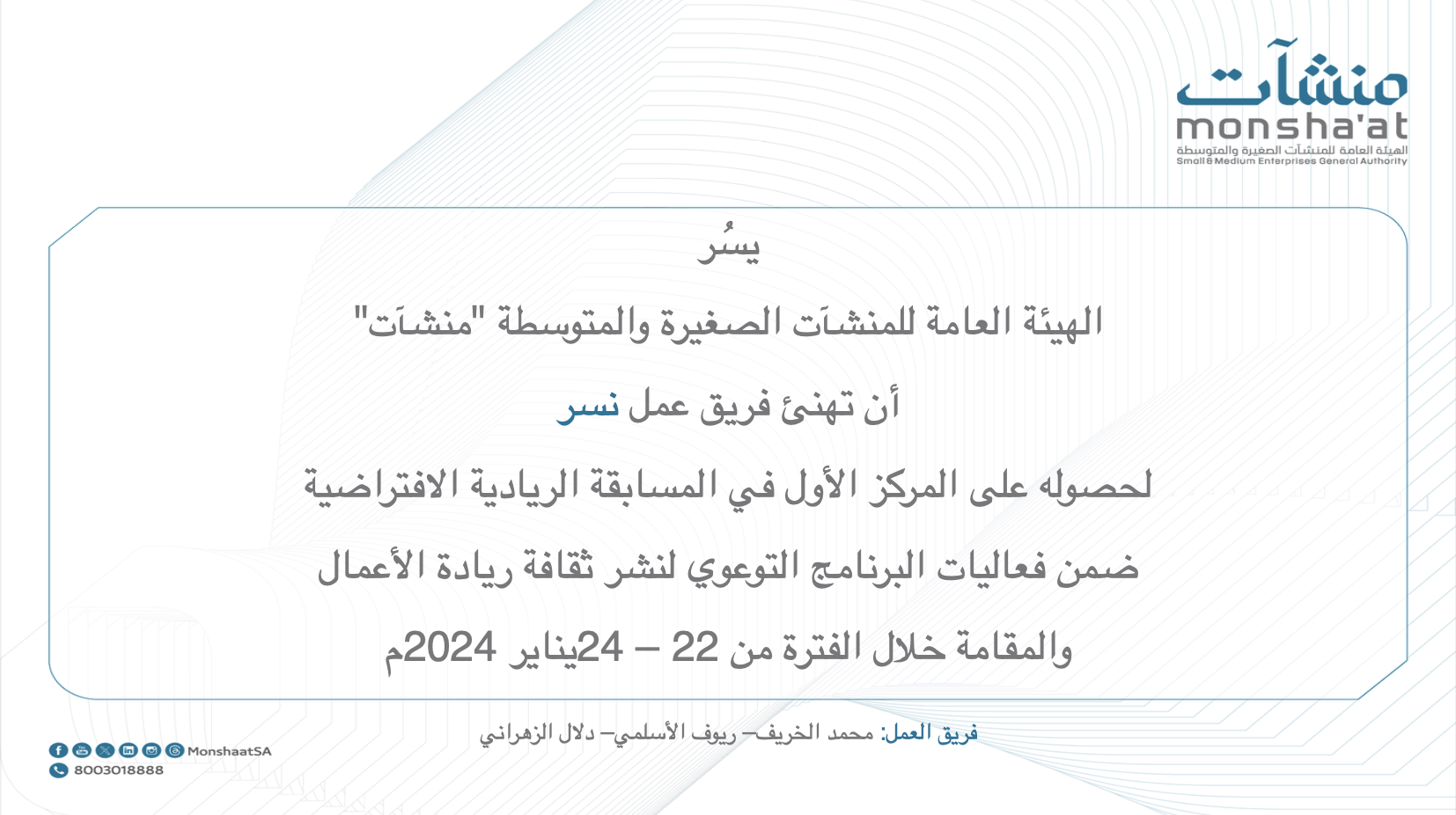 We affirm our firm commitment to continue working hard to achieve more accomplishments, and to make Nesr a leading platform in the field of developing tourist guidance in the Kingdom of Saudi Arabia.